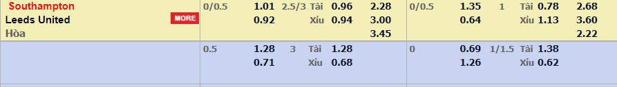 - Mức kèo nhà cái W88 cược chấp trận này: Southampton chấp 0,25 Trái. Southampton ăn 1,01. Leeds Utd ăn 0,92