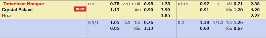 - Mức kèo nhà cái cược chấp trận này: Tottenham chấp 0,75 trái. Tottenham ăn 1,05. Crystal ăn 0,85