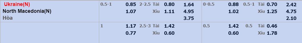 - Mức kèo nhà cái cược chấp trận này: Ukraine chấp 0,75 trái. Ukraine ăn 0,85. Bắc Macedonia ăn 0,85