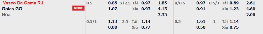 - Mức kèo nhà cái cược chấp trận này: Vasco chấp 0,5 trái. Vasco ăn 0,85. Goias ăn 1,07