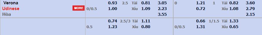 - Mức kèo nhà cái cược chấp trận này: Udinese chấp 0,25 Trái. Verona ăn 0,93. Udinese ăn 1,00