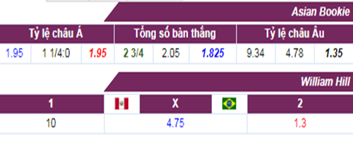 Cập nhật thông tin soi kèo, tỷ lệ cượcPeru – Brazil, mới nhất và chính xác nhất Peru – Brazil, (23/06/2019).