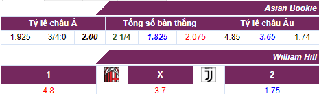 Ngoài ra người chơi nên theo dõi và cập nhật kèo nhà cái trực tuyến để theo dõi sự biến động tỷ lệ cược trong trận đấu giữa AC Milan – Juventus từ 1gom cá cược trực tuyến hàng đầu hiện nay để có thể lựa chọn được cho mình những dự đoán chính xác nhất.
