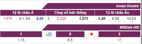 Kết quả dự đoán tỷ số trận Uruguay – Nhật Bản