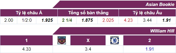 - Tỷ lệ Châu Âu: cửa Chelsea thắng ăn 1.91, Hòa ăn 3.4, cửa Burnley thắng ăn 4.33.