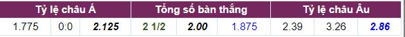 Số bàn thắng mà các nhà cái đưa ra cho trận đấu này chỉ là 2 1/2 trái. Đây là số bàn thắng được cho là khá phù hợp với thực lực và hoàn cảnh hiện tại của trận đấu này. Theo đó nếu lựa chọn của Tài tỷ lệ kèo ăn sẽ là 2.00 và nếu chọn cửa xỉu thì tỷ lệ ăn sẽ là 1.875