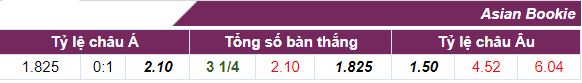 - Kèo Tài Xỉu cả trận: Số bàn thắng mà nhà cái đưa ra trong trận này là 3 1/4 trái. Nếu dân cược lựa chọn của Tài sẽ ăn kèo với tỉ lệ 2.10. Nếu cho của Xỉu ăn kèo với tỉ lệ 1.825