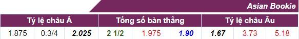 - Kèo Tài Xỉu cả trận: Số bàn thắng mà nhà cái đưa ra trong trận này là 2 1/2 trái. Nếu dân cược lựa chọn của Tài sẽ ăn kèo với tỉ lệ 1.975. Nếu cho của Xỉu ăn kèo với tỉ lệ 1.90