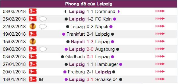 - Phong độ thi đấu gần đây của Leipzig không quá tốt với 4 trận thắng, 2 trận hòa và 4 thất bại trong 10 trận gần nhất trên mọi đấu trường