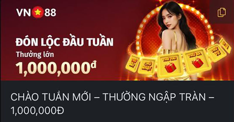 Vn88 chào tuần mới nhận thưởng 1,000,000đ cho thành viên