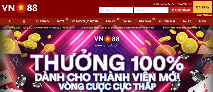 Tuy là một Nhà cái mới xuất hiện gần đây nhưng VN88.com hội tụ đủ mọi yếu tố để trở thành một Nhà cái tốt nhất với tất cả những tính năng, trò chơi, thừa hưởng những tinh túy, chất lượng trong các trò chơi cá cược trực tuyến hiện nay.